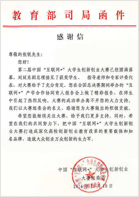 2018年,捷报比分连续多年为中国国际互联网+大学生创新创业大赛做出积极贡献,获教育部来函致谢。